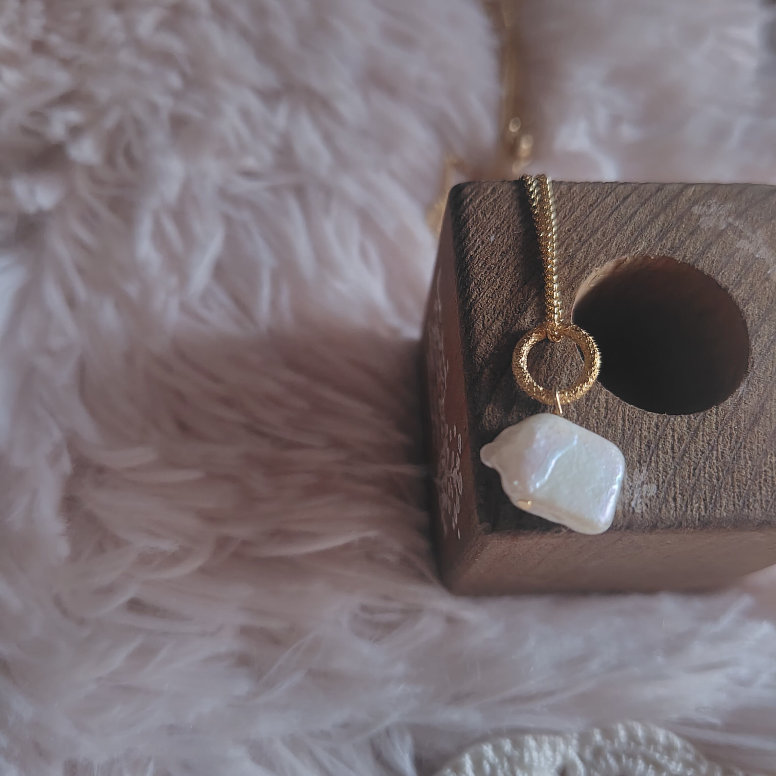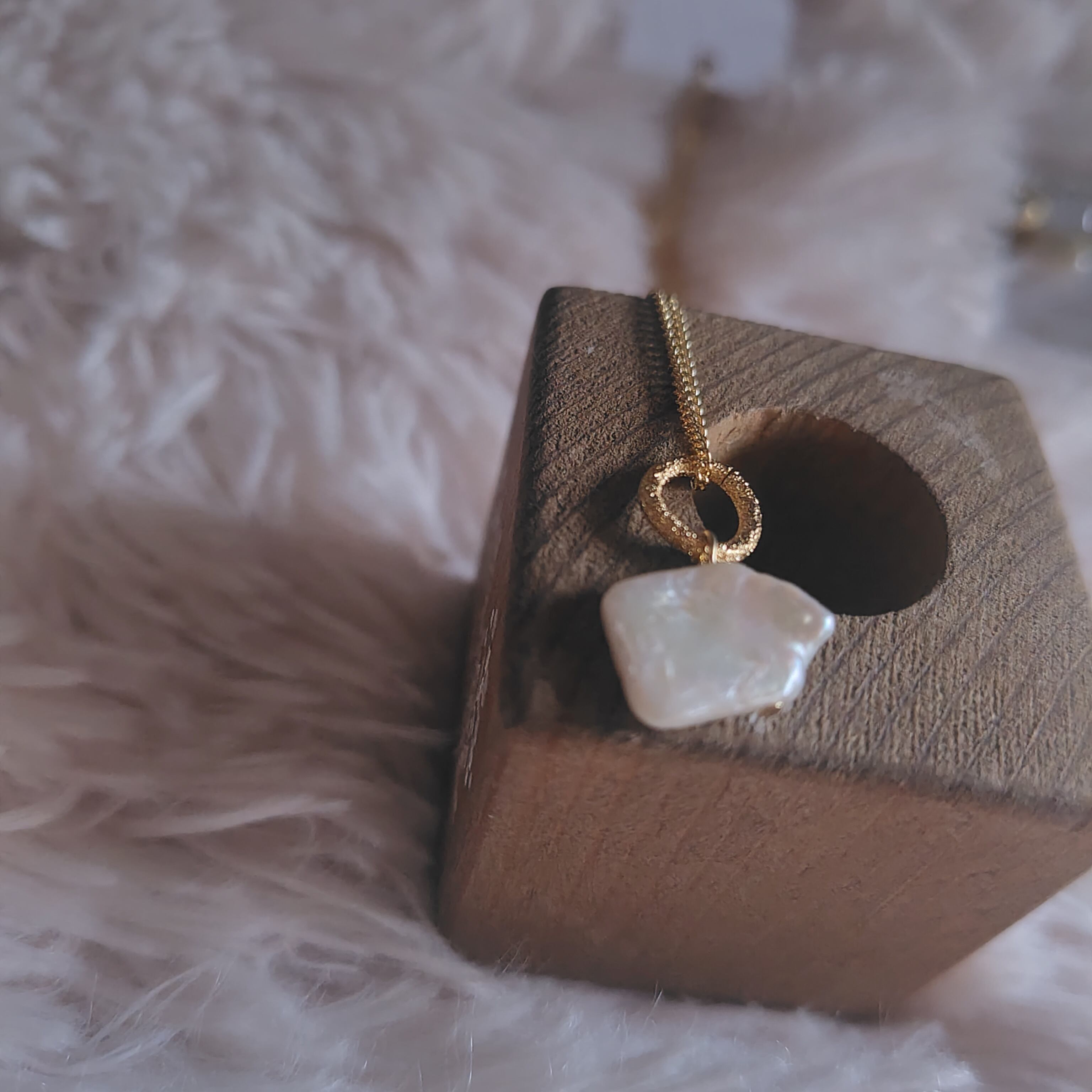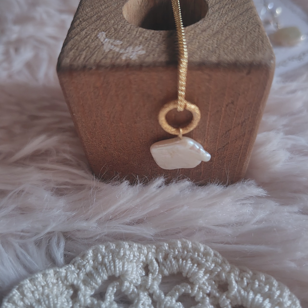 なんとも言えないお色とユニークな淡水パールの形が可愛らしい一品
