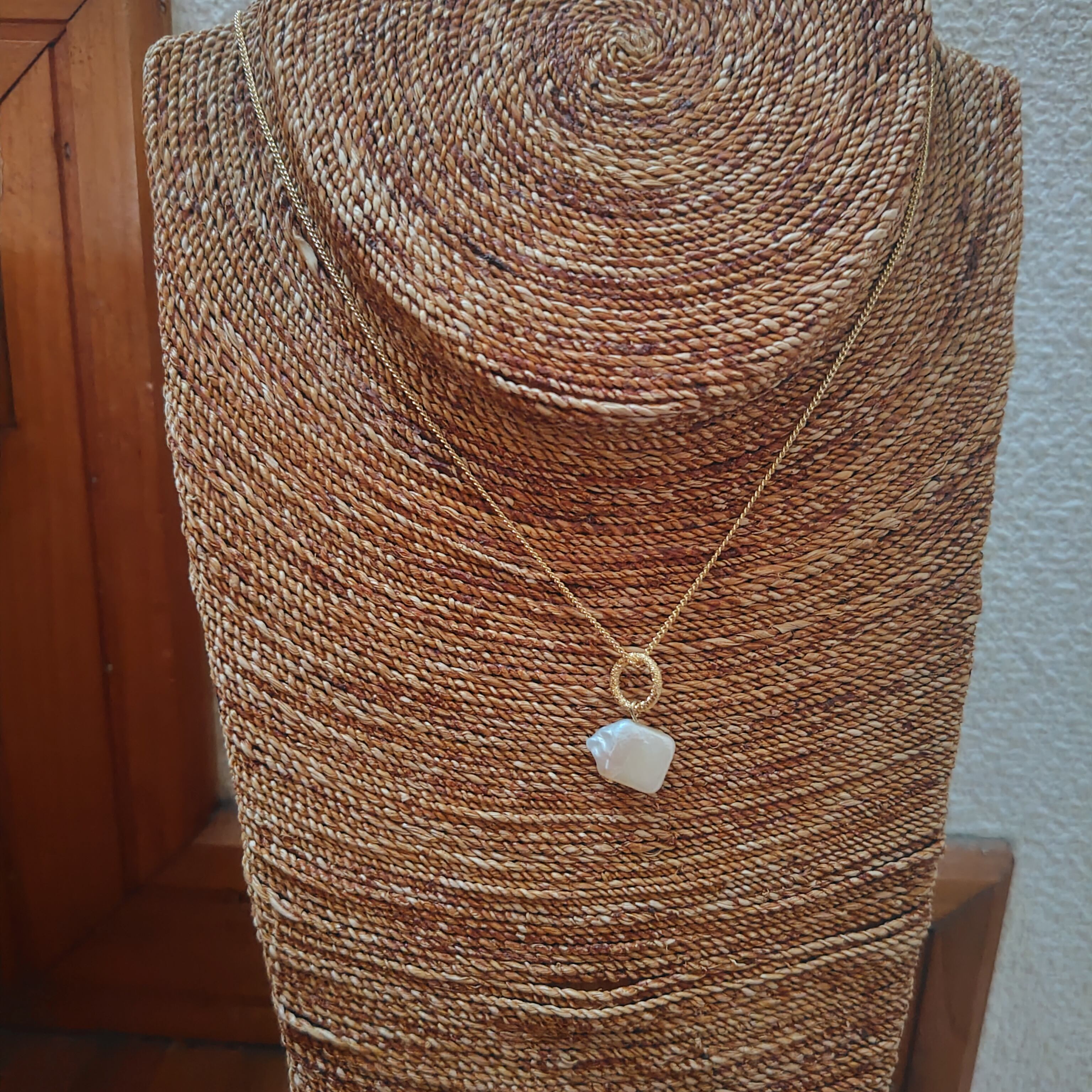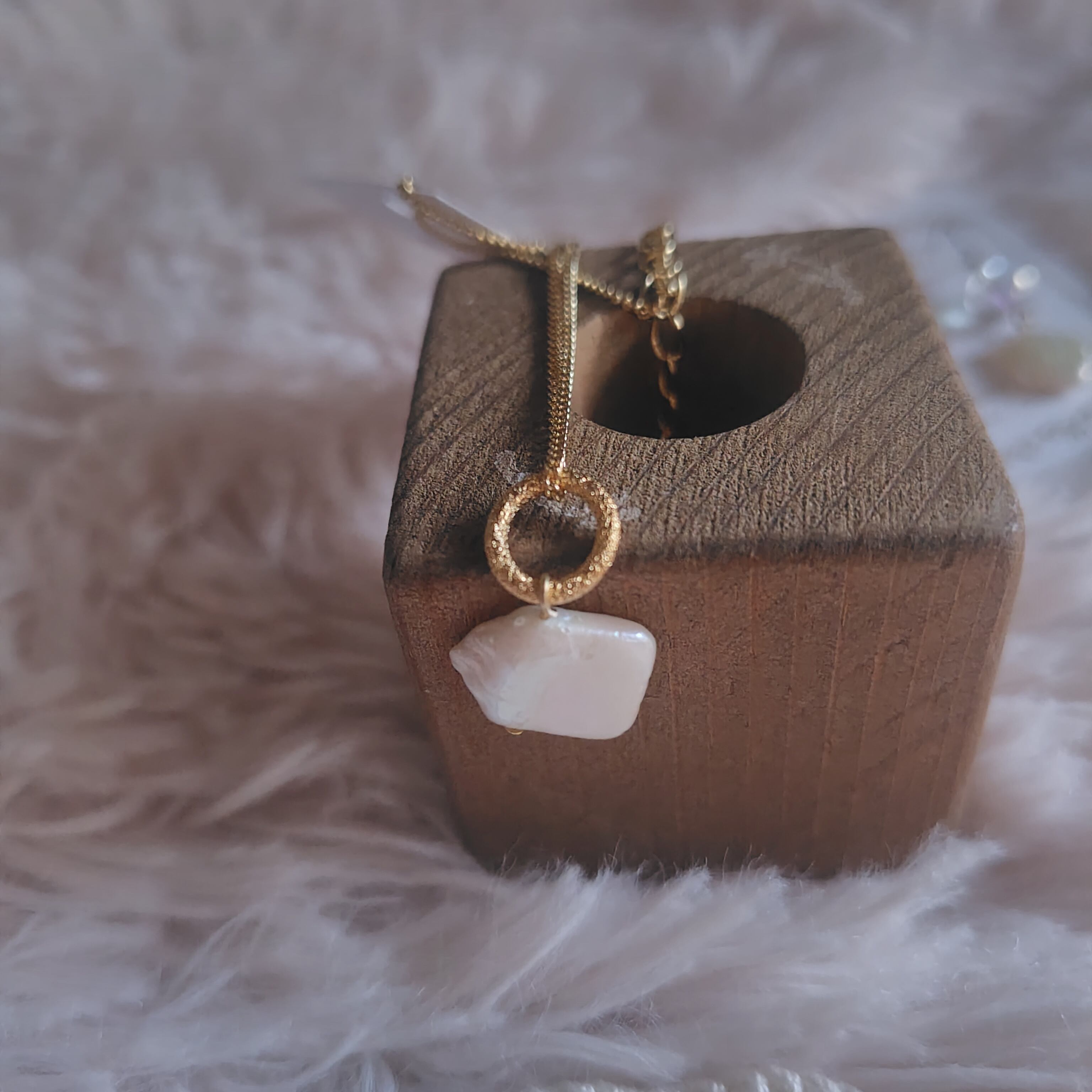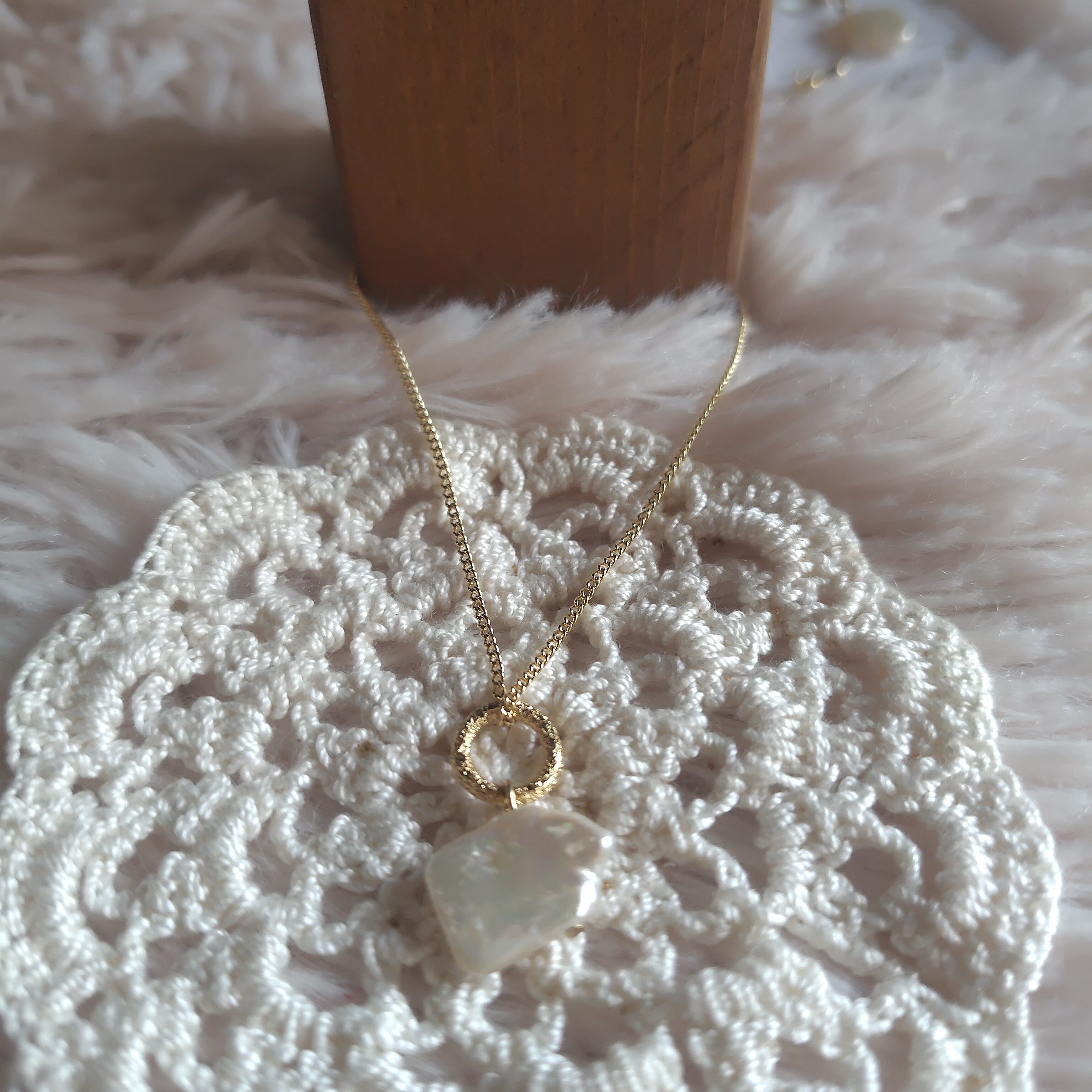 なんとも言えないお色とユニークな淡水パールの形が可愛らしい一品