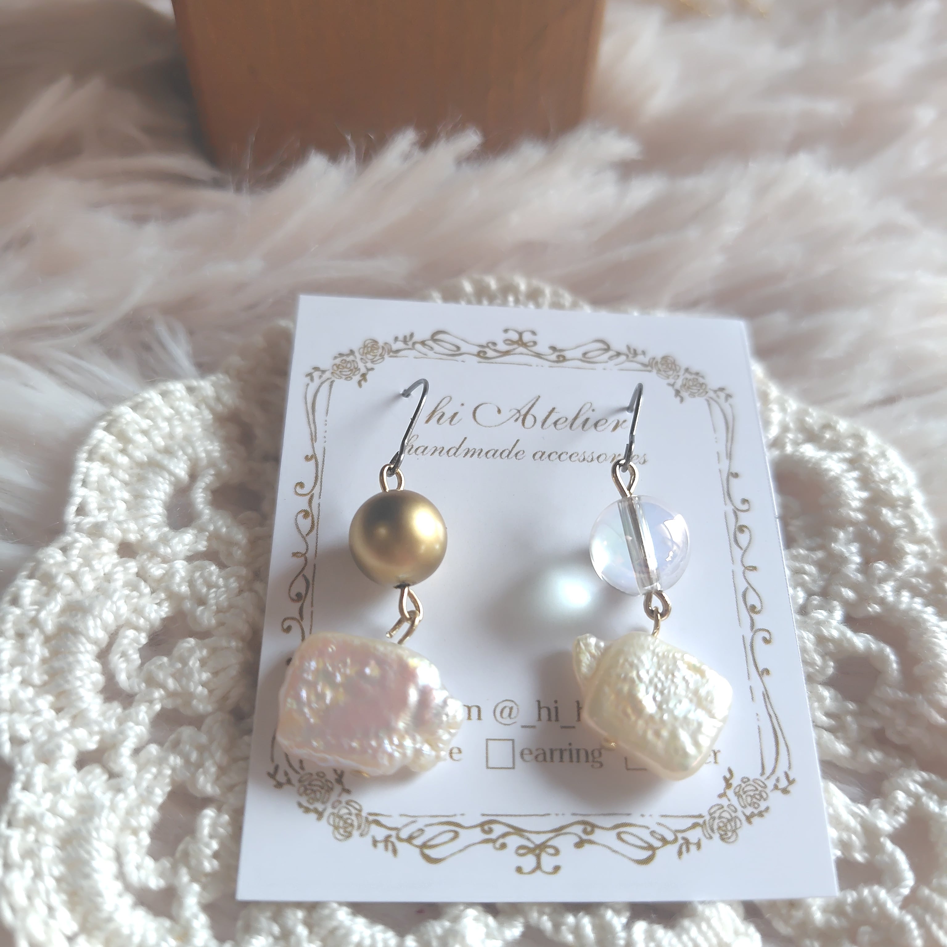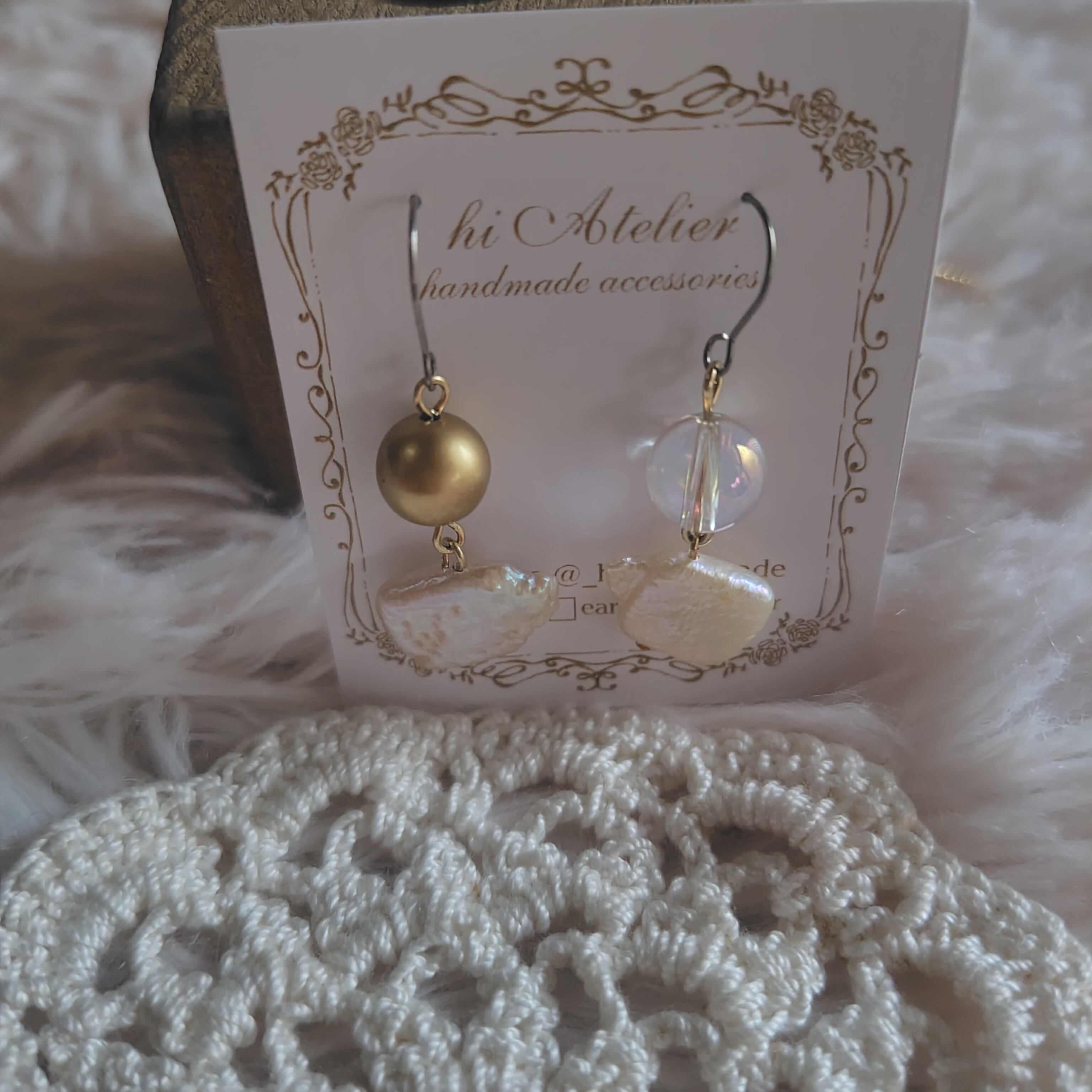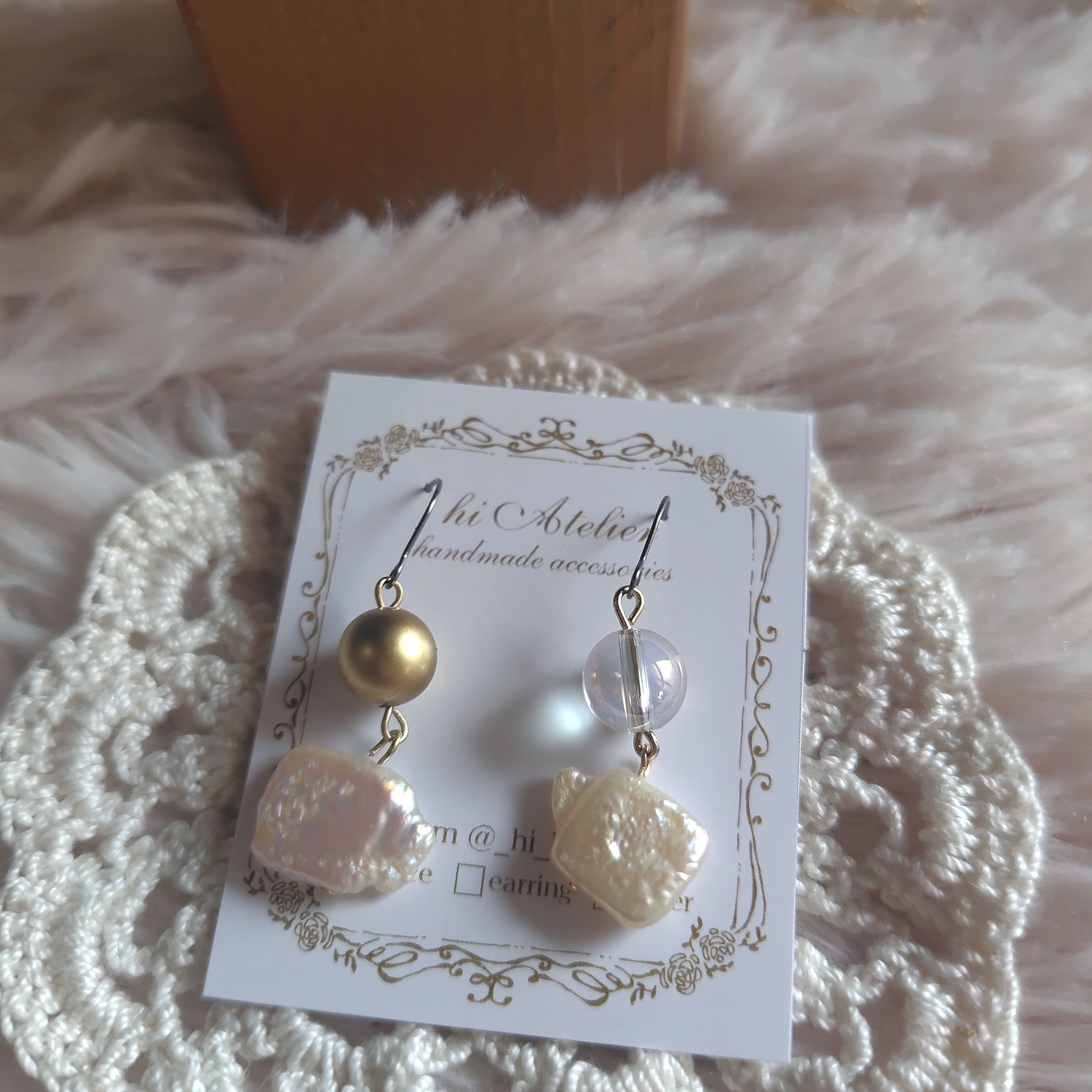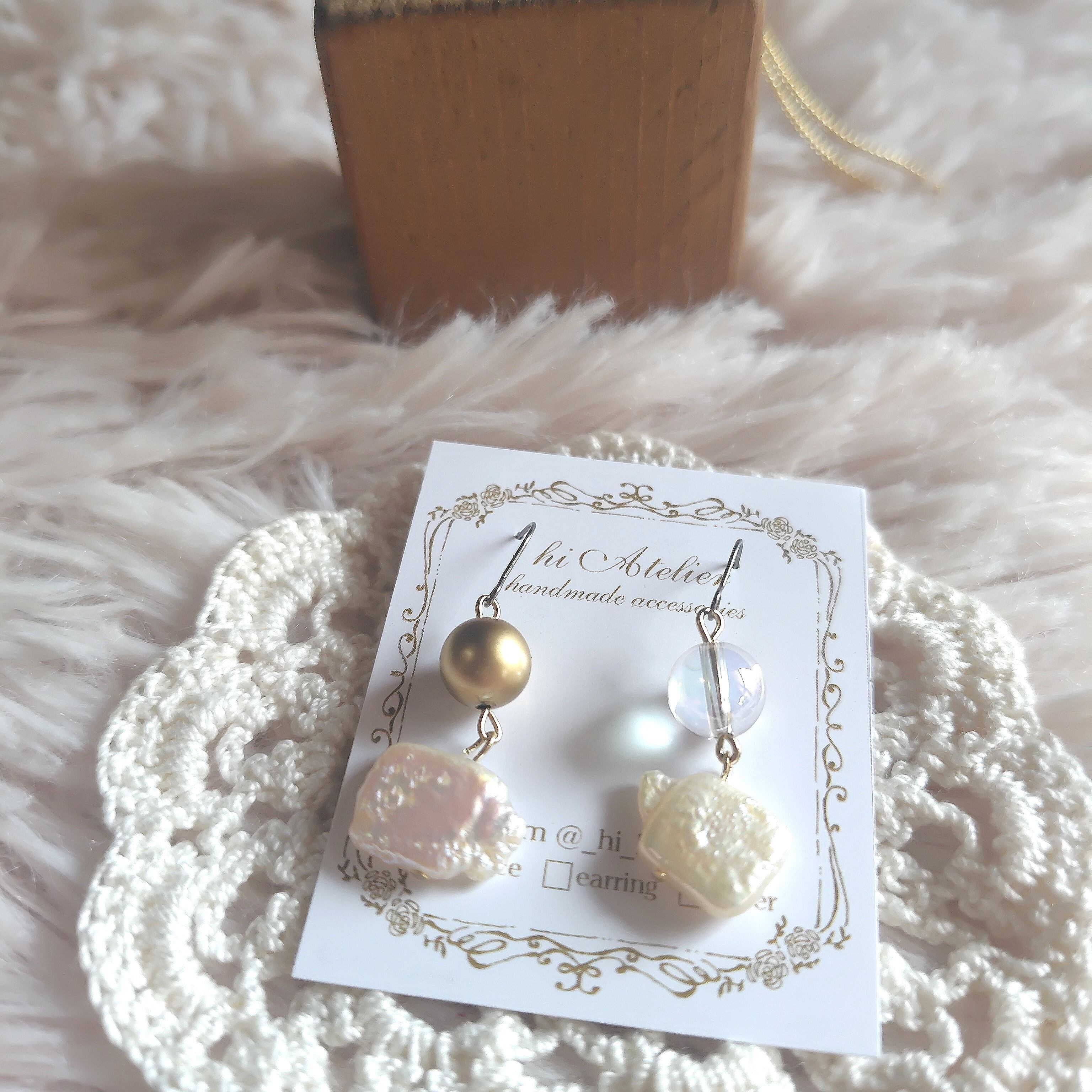 こちらの耳飾りは手作りのため、1点物としてご用意しております