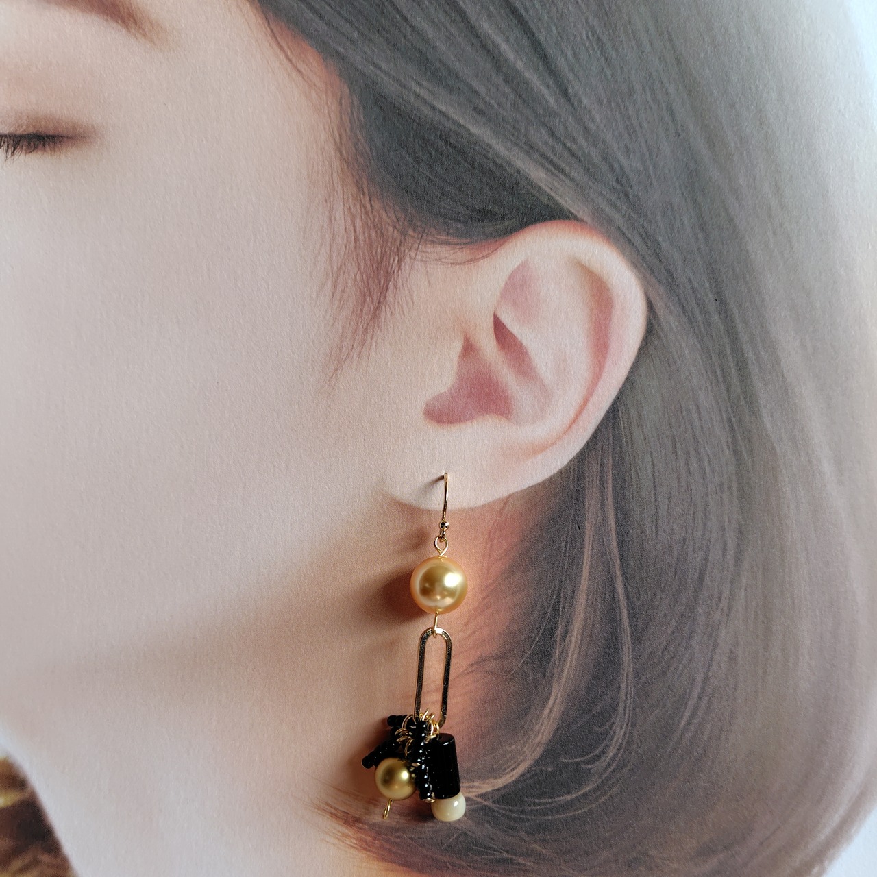 片側の黒っぽい方は手作りの古いビーズがシャランとゆれる
