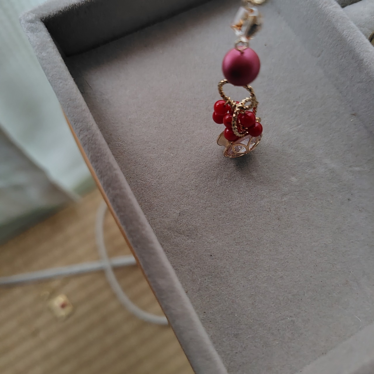 紅ビロードアクセサリーは、深い紅色のスワロフスキーパールや珊瑚ビーズが魅力的なアイテムです。