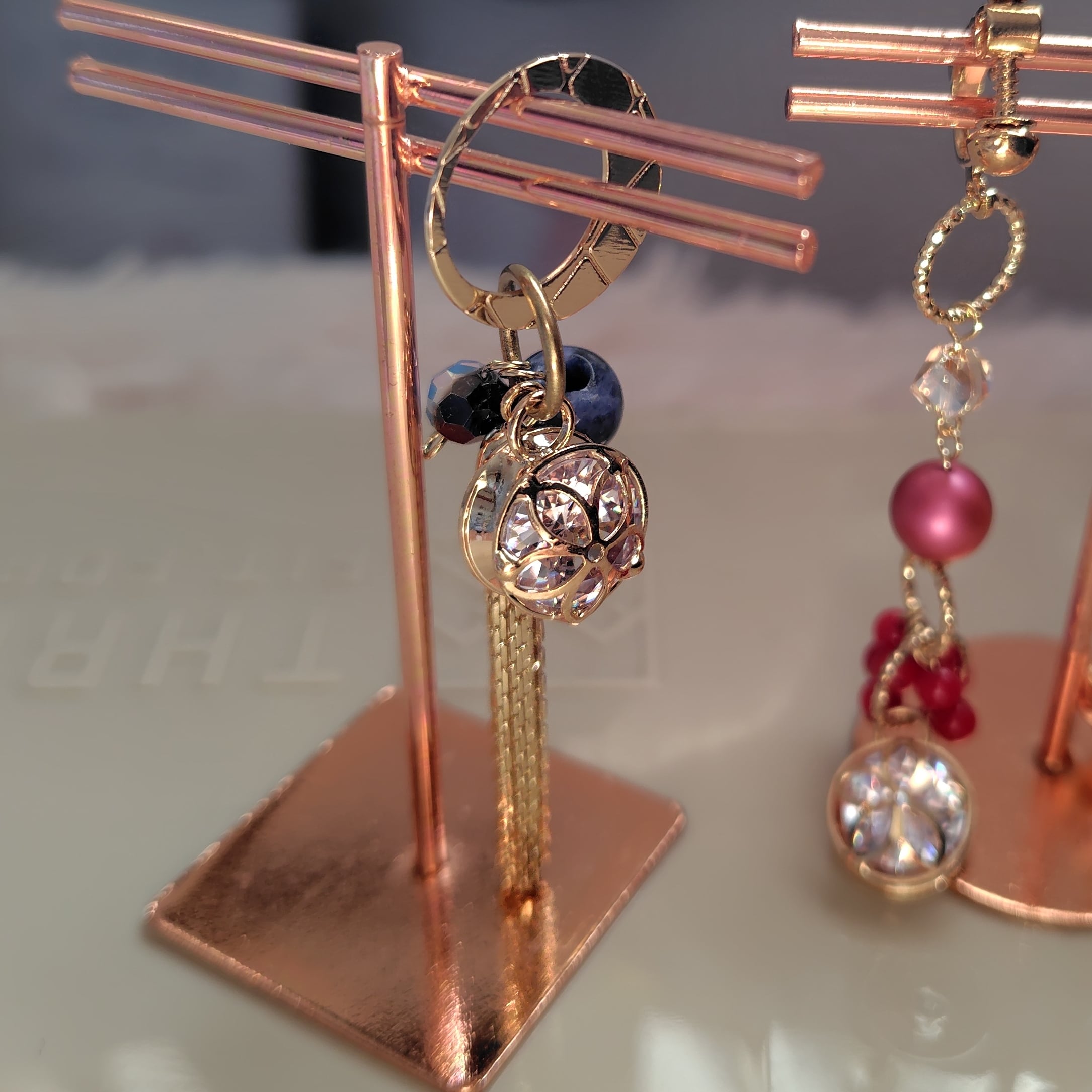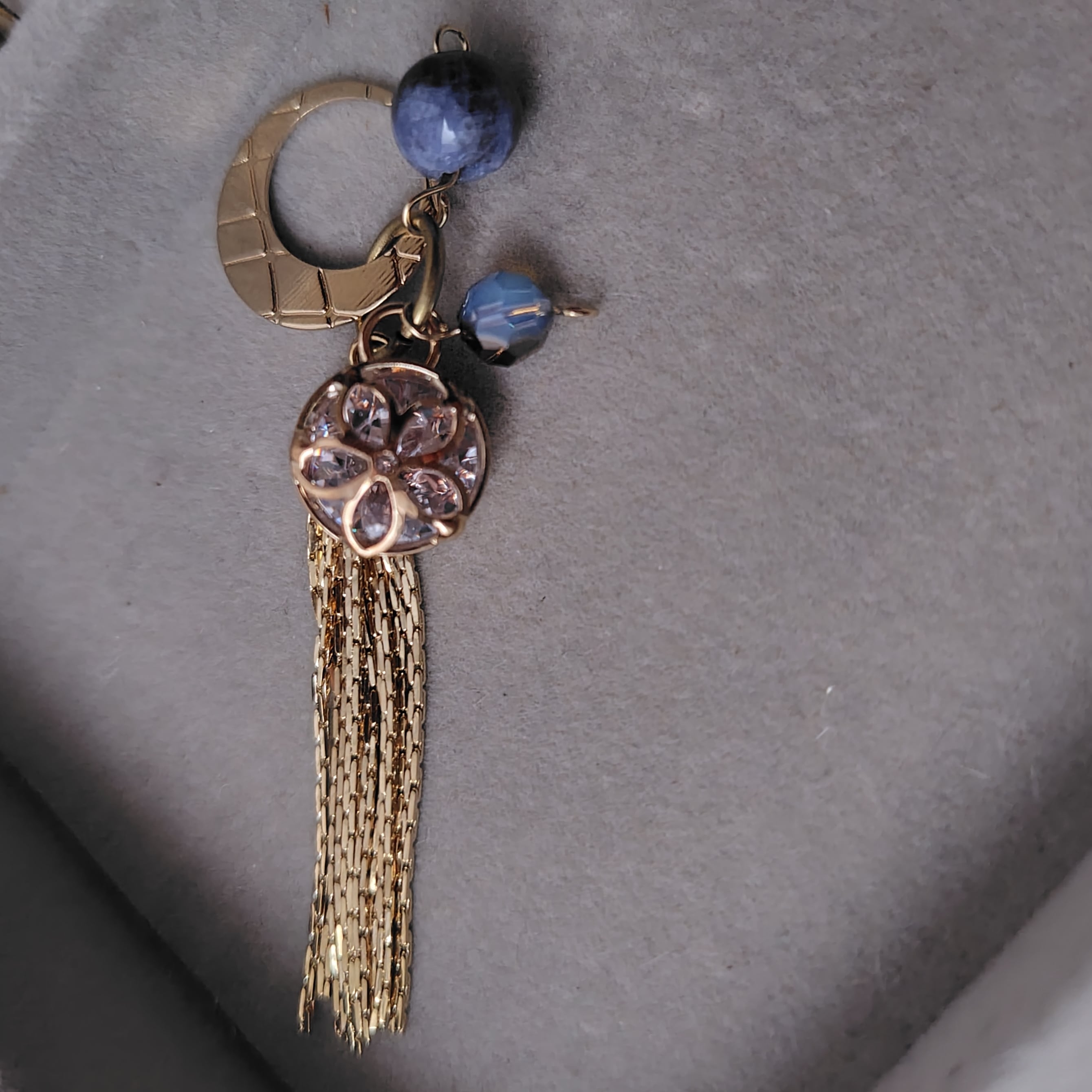 使用されている石ソーダーライトは、しっかりとした存在感を持ちながらも、深い青色が特別な美しさを演出します。また、ゴールドカラーパーツとの組み合わせにより、洗練されたエレガントな印象を与え、あなたの魅力を一層引き立てます。