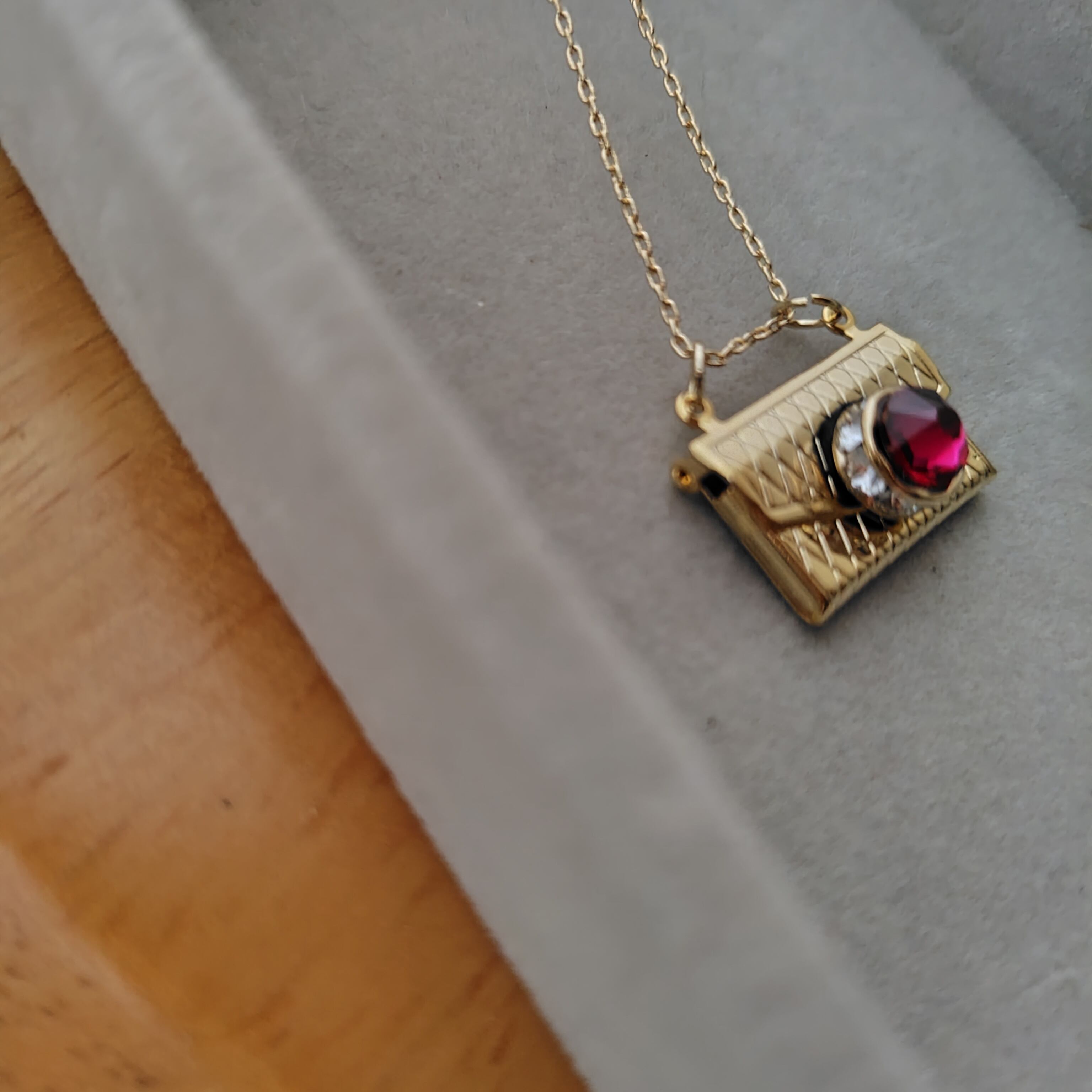 魅惑の赤い石で彩るバッグに見立ててるアクセサリー