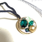水色の大きめパーツは革ひも結び目をほどいて抜くと2wayになります