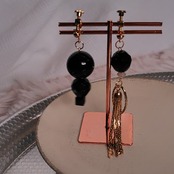 深い色合いと独特のテクスチャーが魅力の耳飾りです。ブラックとゴールドのコントラストが目を引き、あなたのスタイルに洗練された印象を与えます。