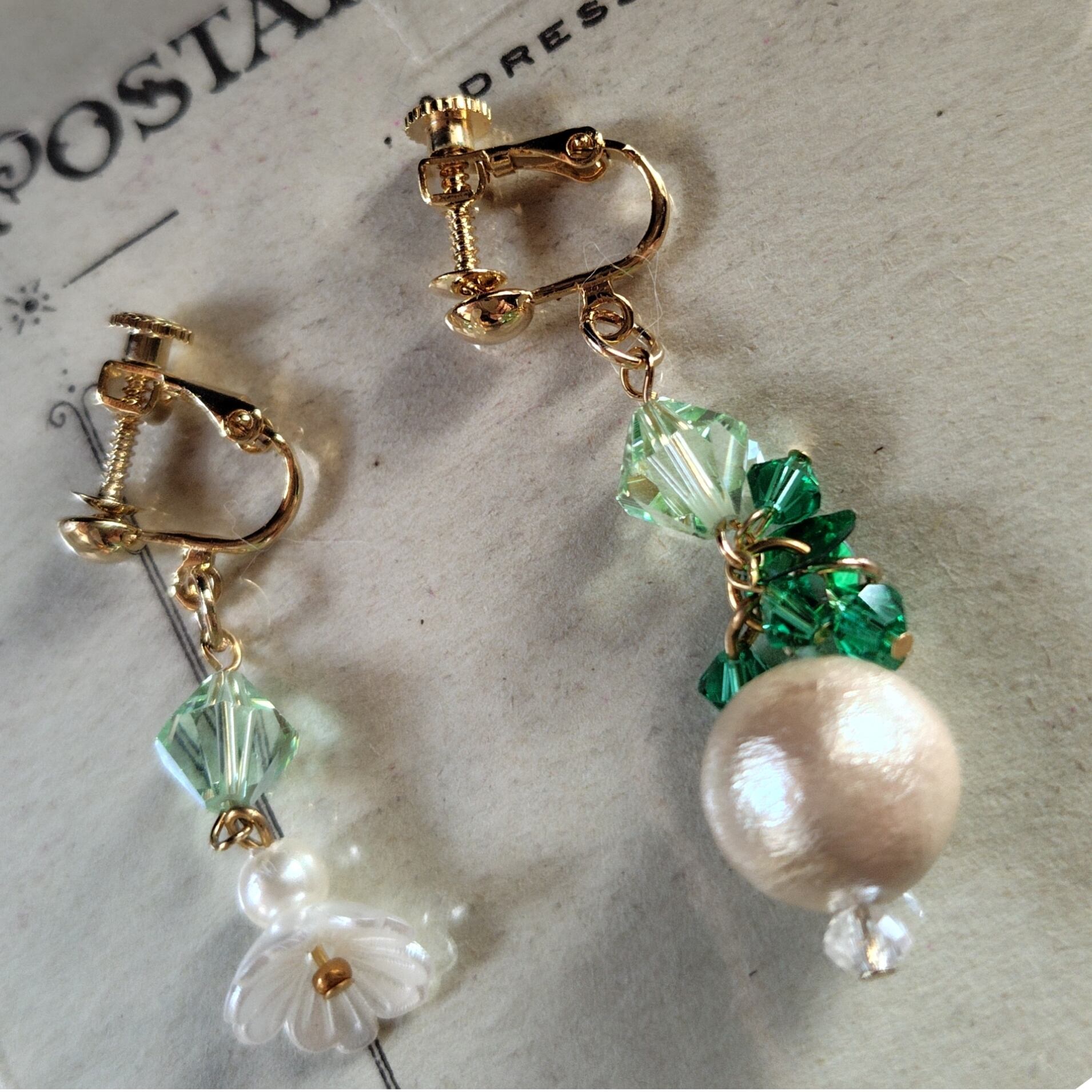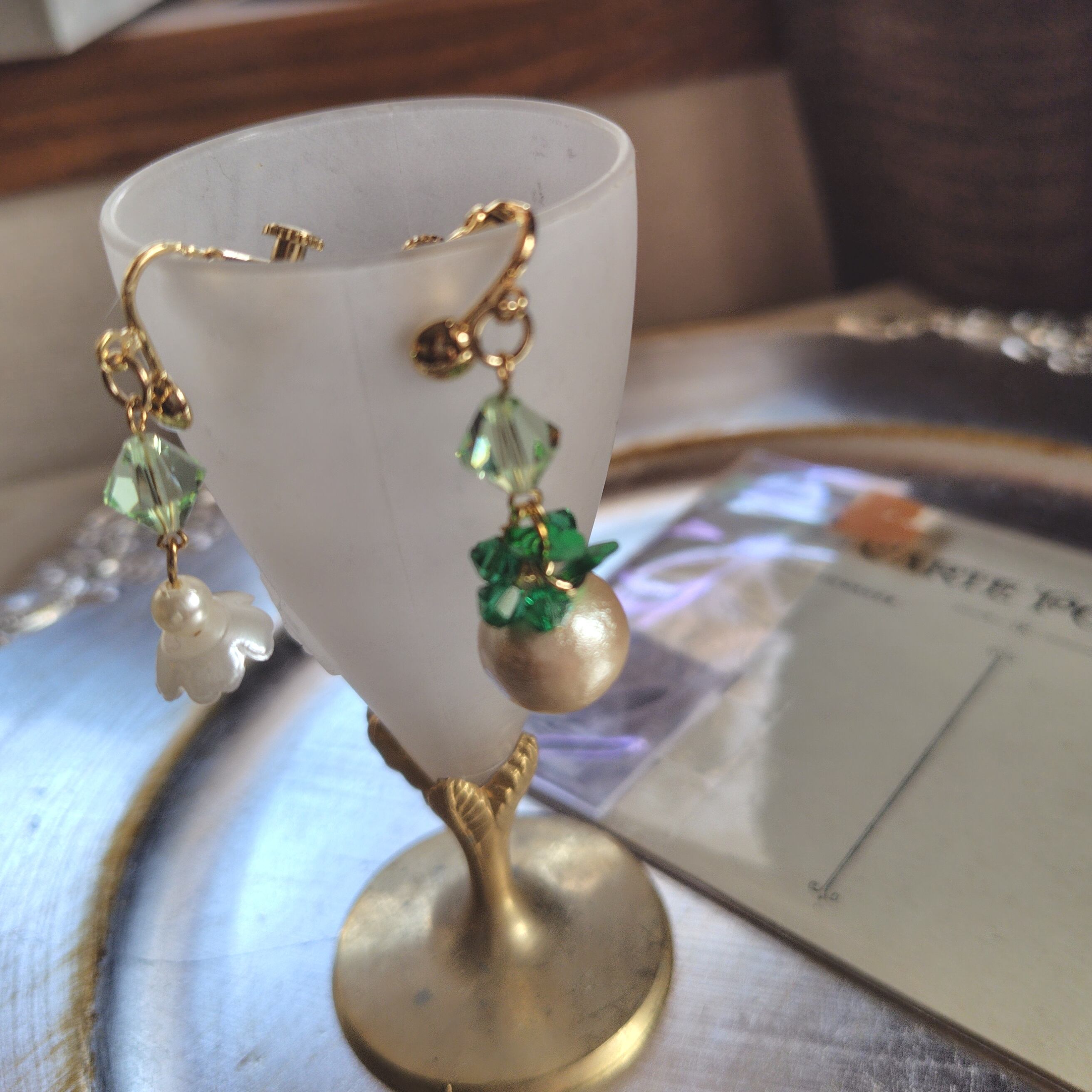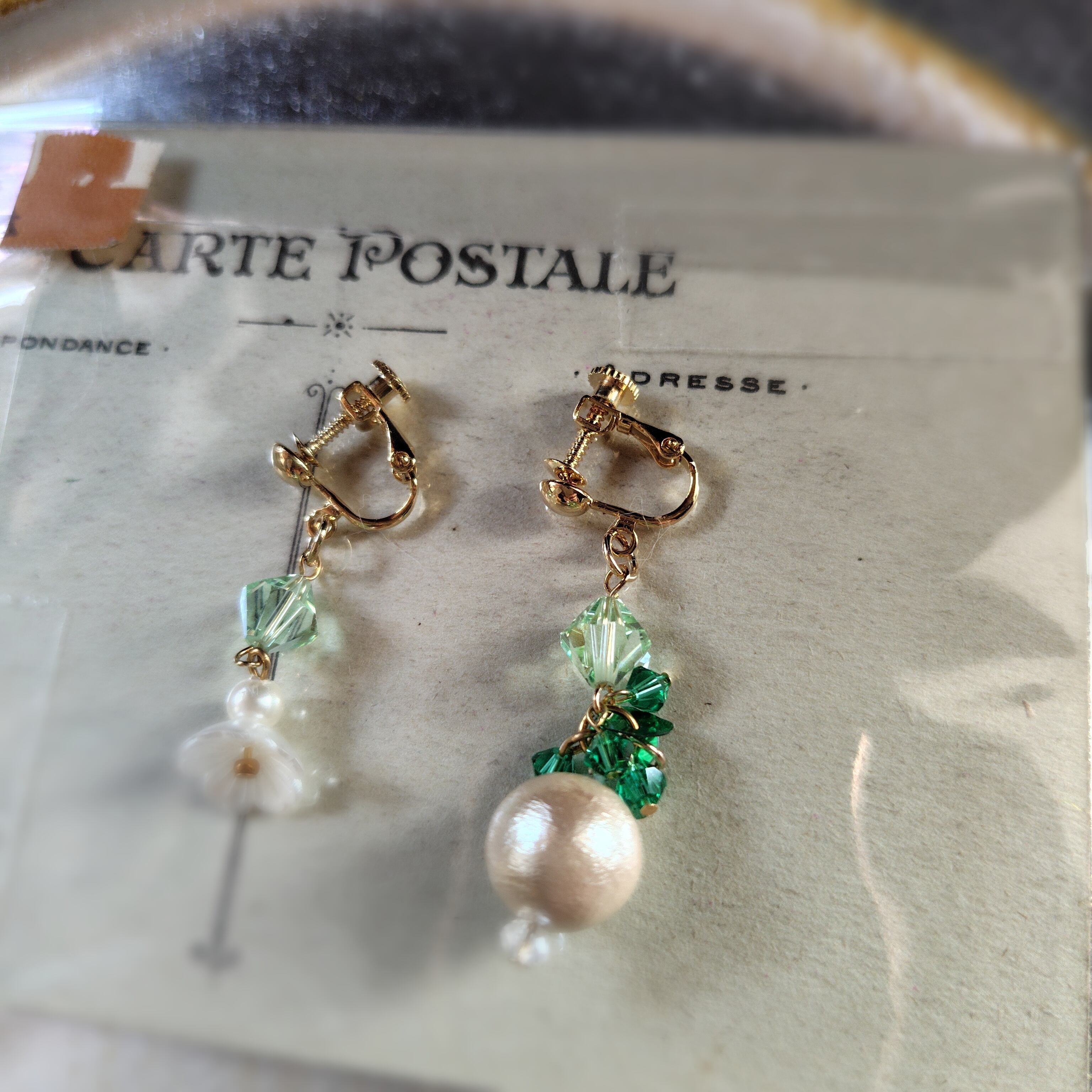森の中で見つけたような可愛らしいお花のイヤリングです