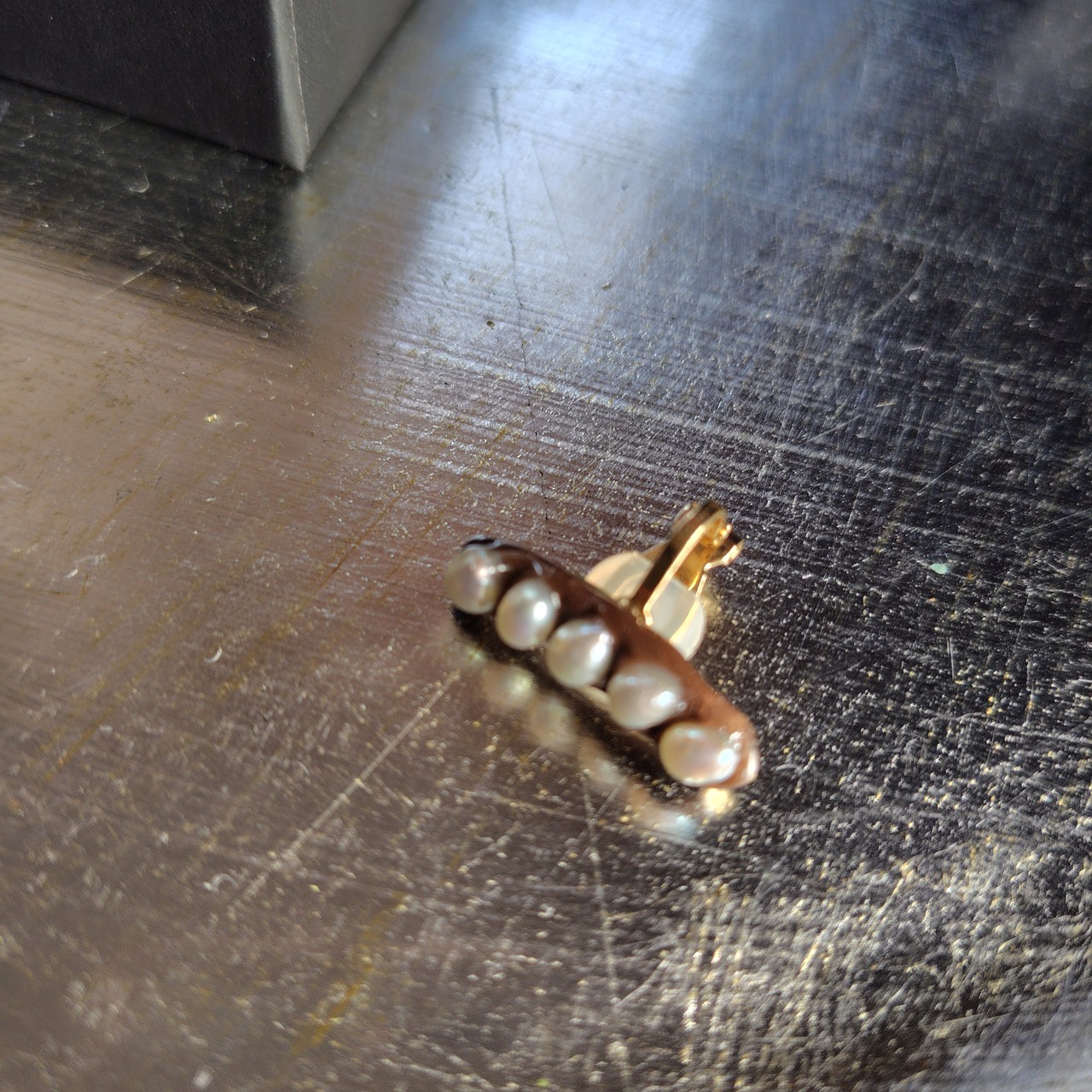 ホワイト淡水パールのイヤークリップです(土台はブラウンです)