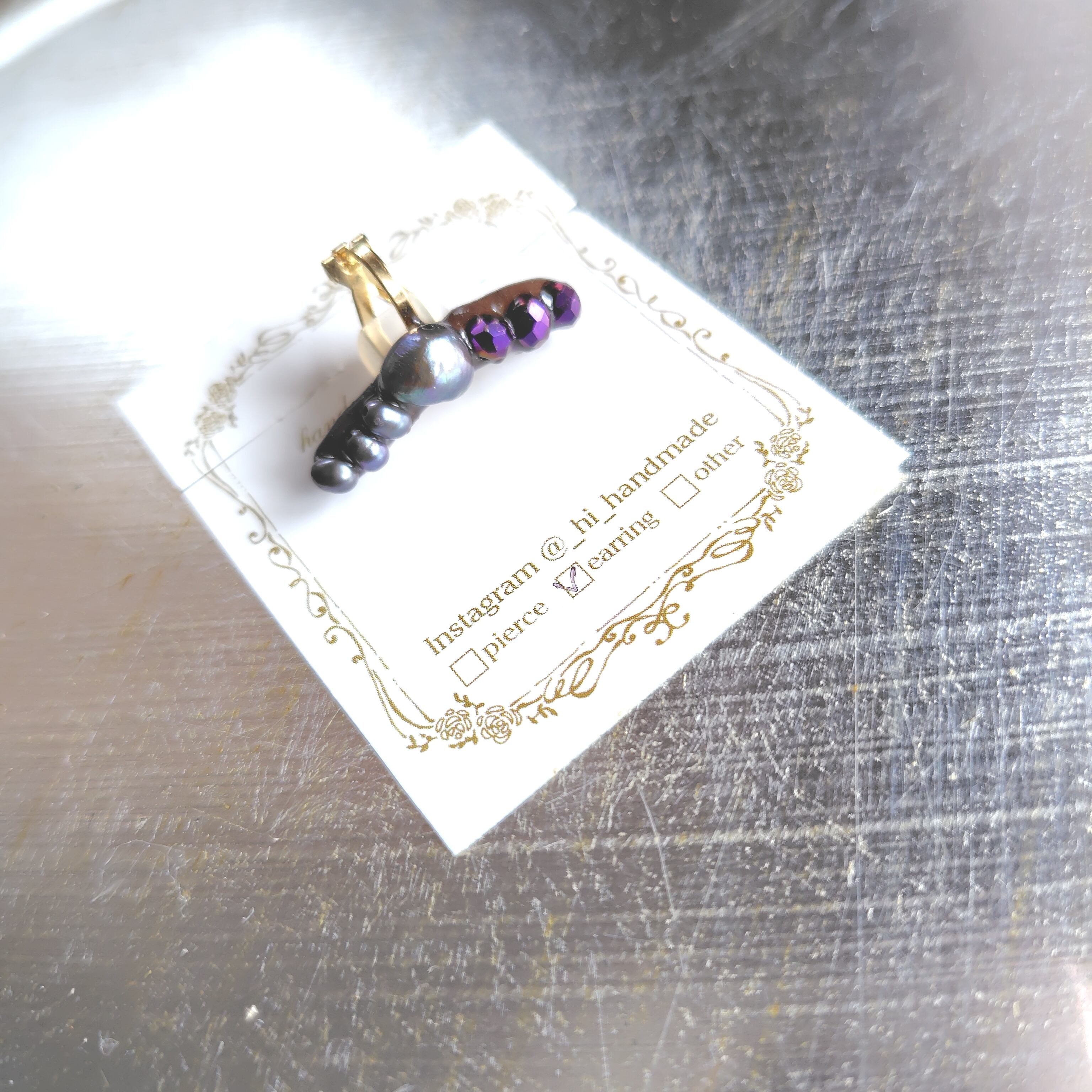 美しいグレー淡水パールとキラキラなパープルビーズが光るお品物
