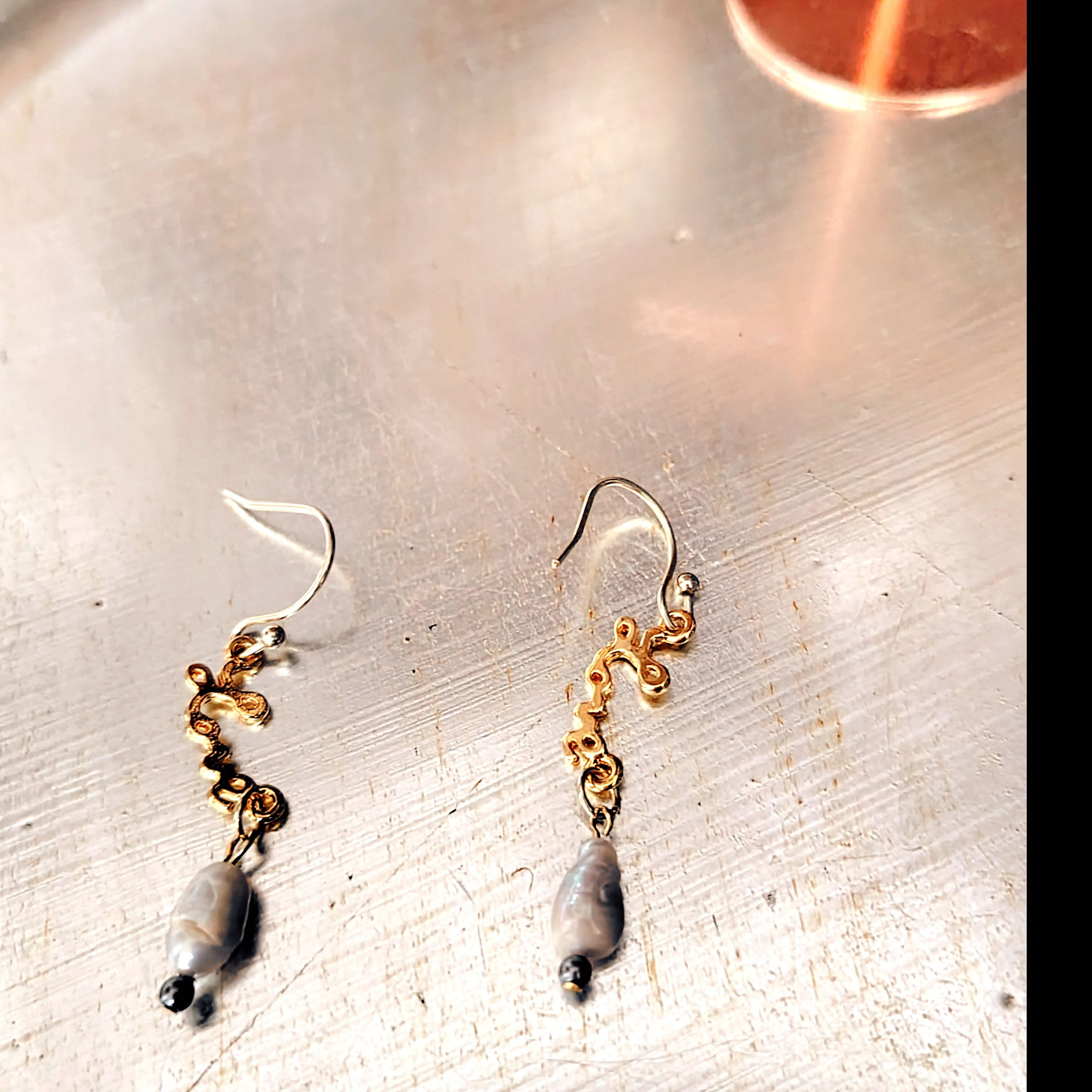 パーツ部分は約3cmとなっており、淡水パールは白っぽく光によって少し輝いてるようにも見えます