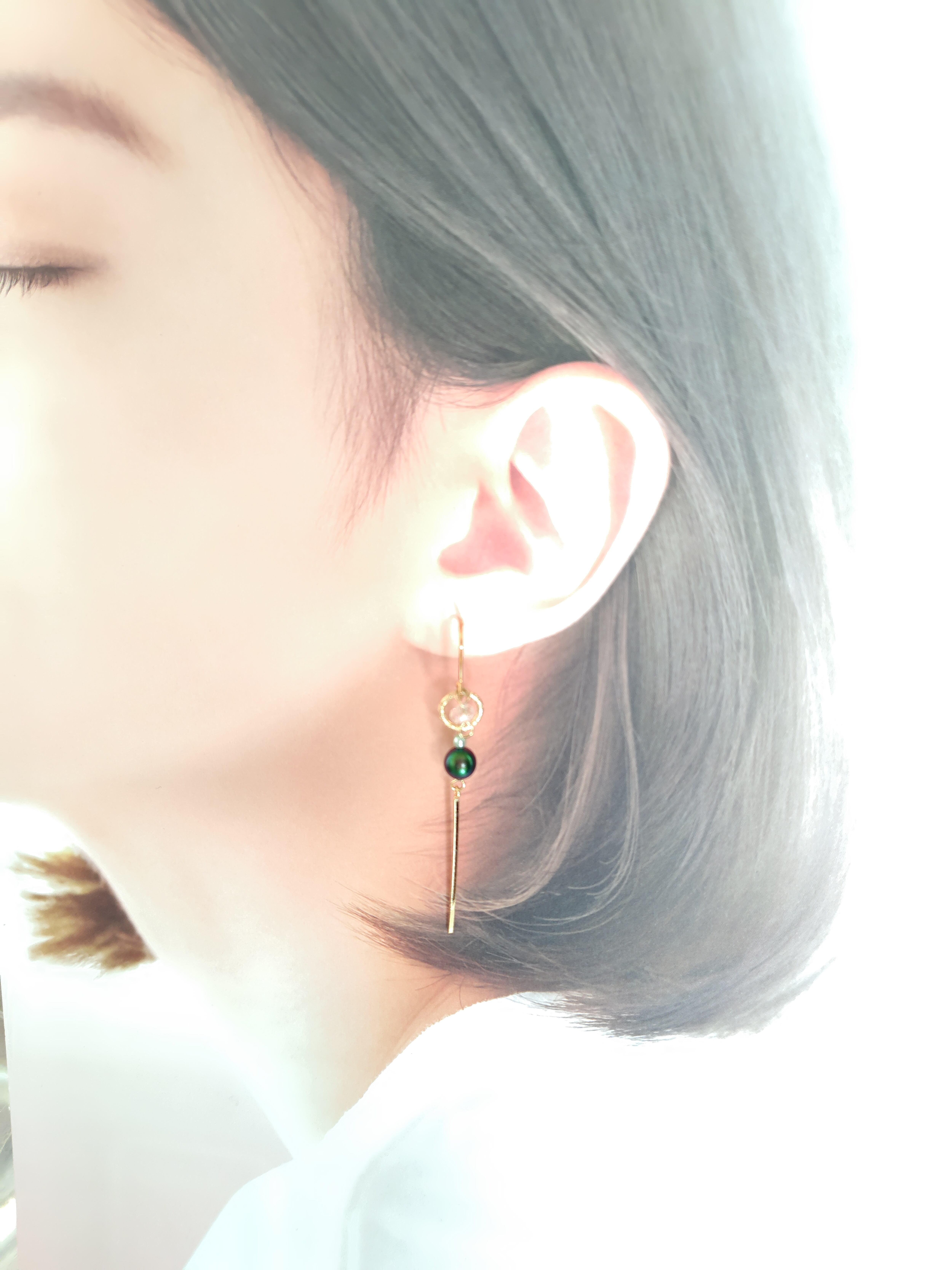 澄んだ美しさを纏ったこのアクセサリーは、まるで神秘的に光る緑の宝石のように、ひときわ目を引くアイテムとなっています。