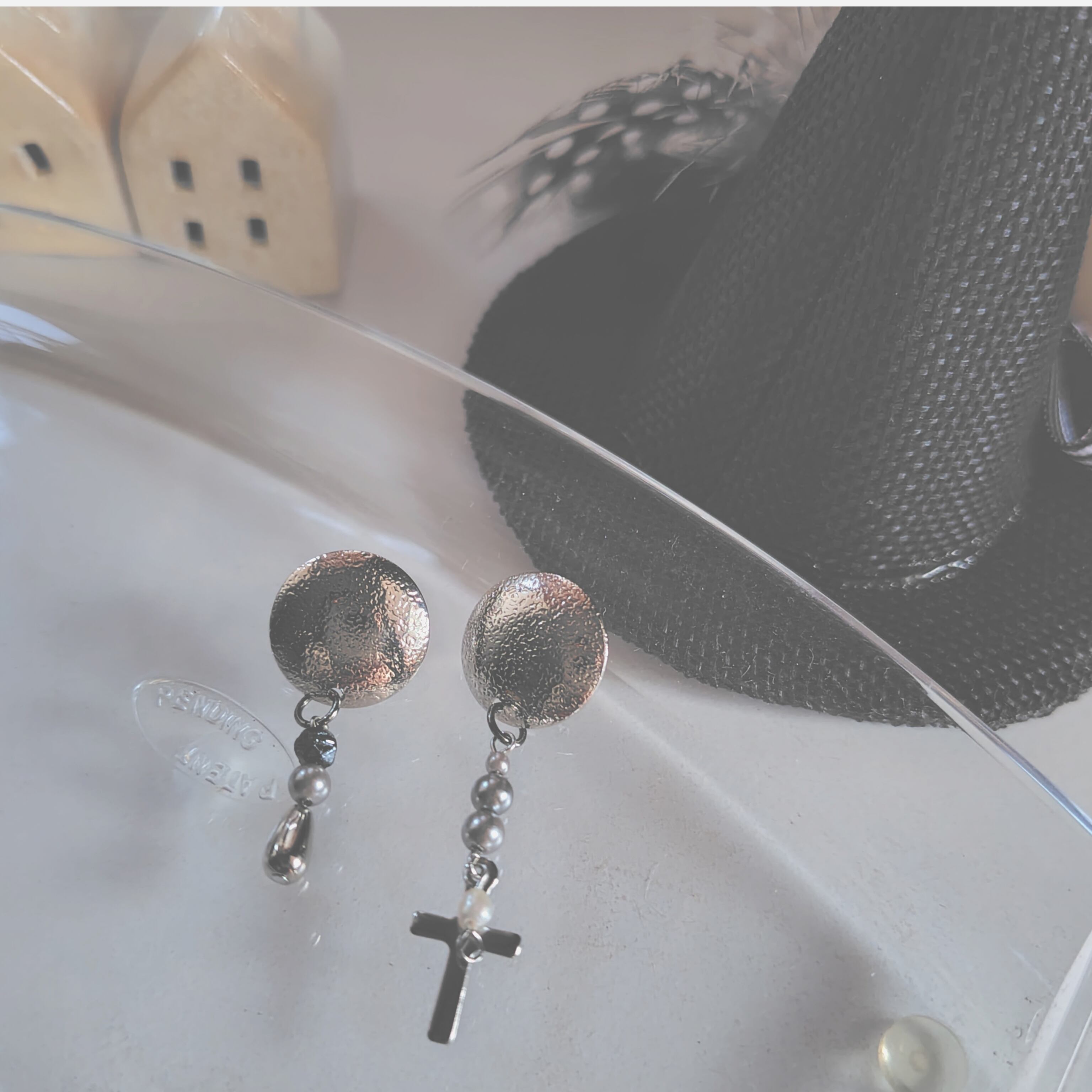 シルバーカラーのクロスモチーフが魅力的な耳飾りです。シンプルながらも洗練されたデザインは、どんなスタイルにもマッチし、日常使いから特別な日のコーディネートまで幅広く活躍します。