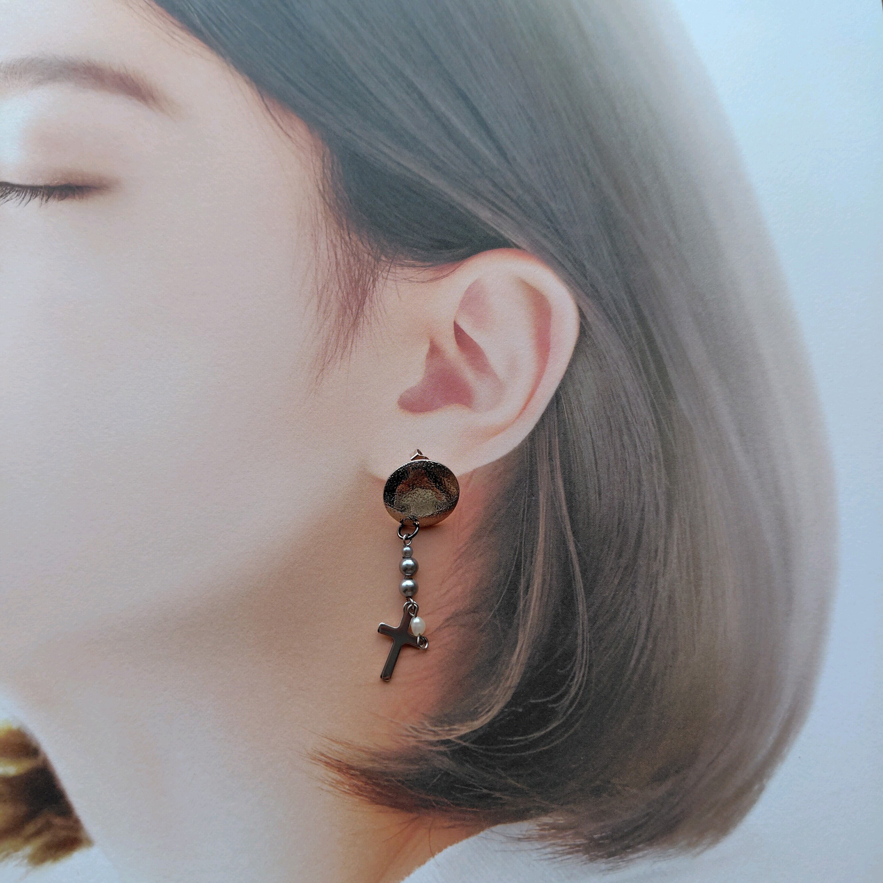 このピアスは、シルバーの輝きが耳元で軽やかに揺れ、上品さと遊び心を兼ね備えたアイテムとなっています。クロスのデザインは、ファッションのアクセントにぴったりで、身に着けるだけで洗練された印象を与えます。