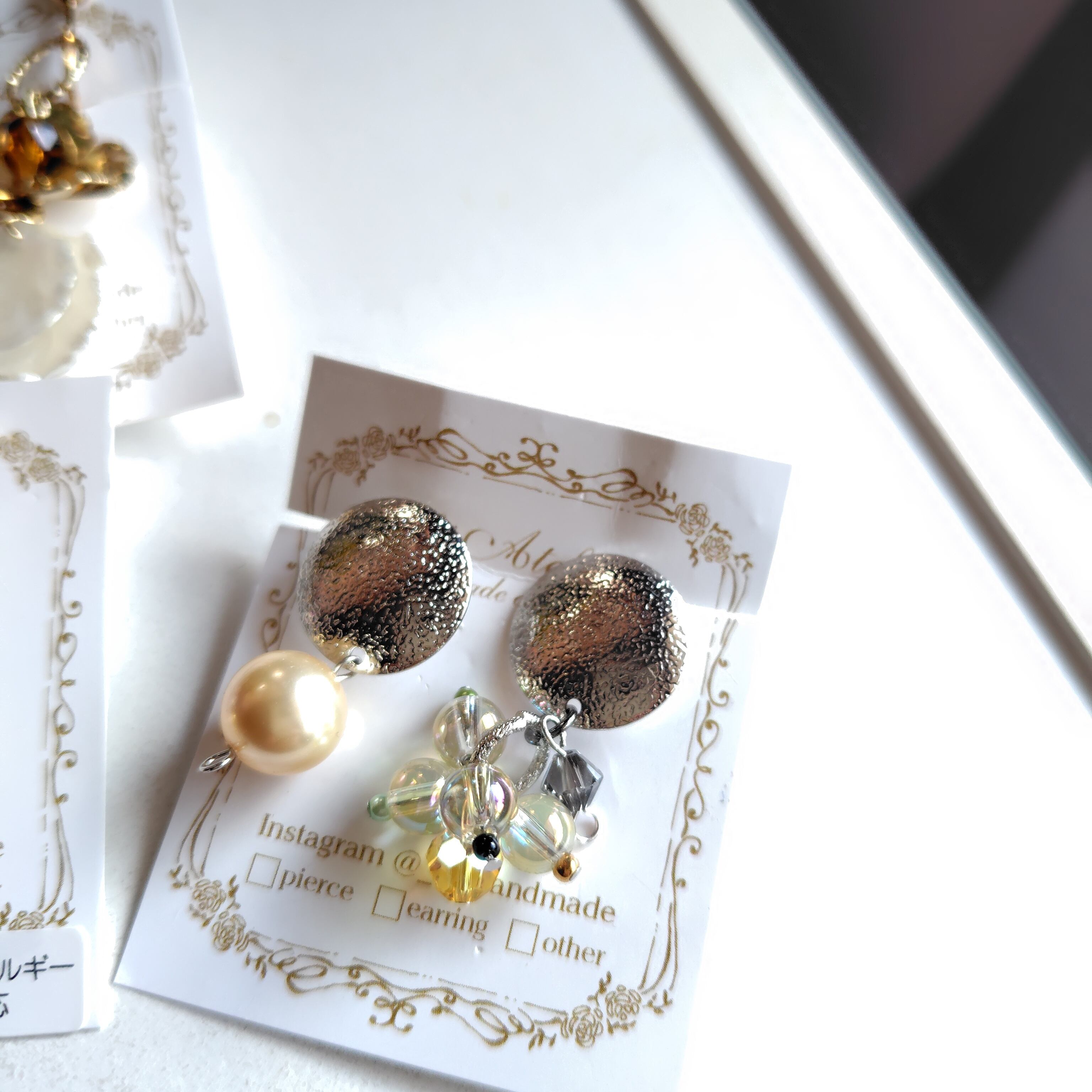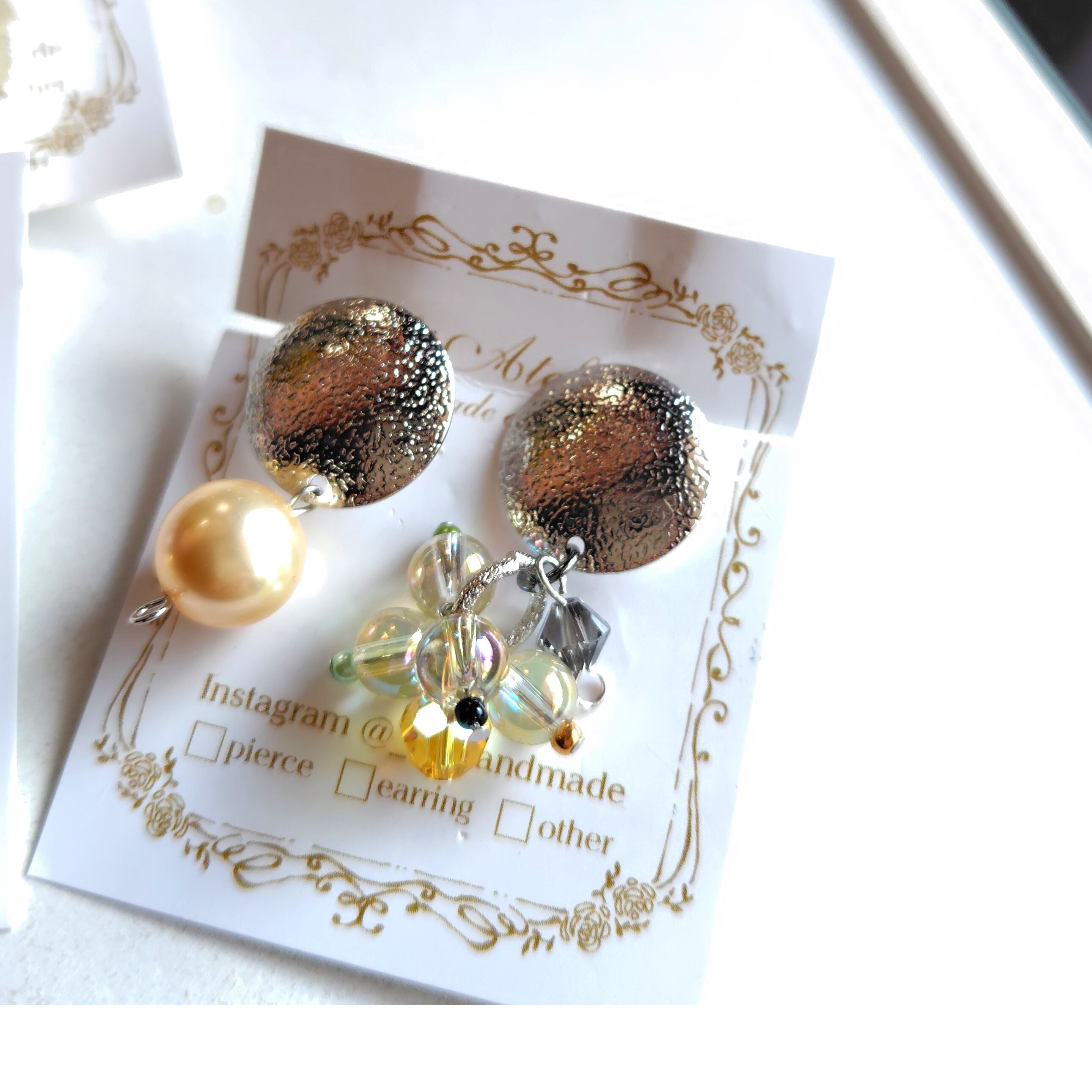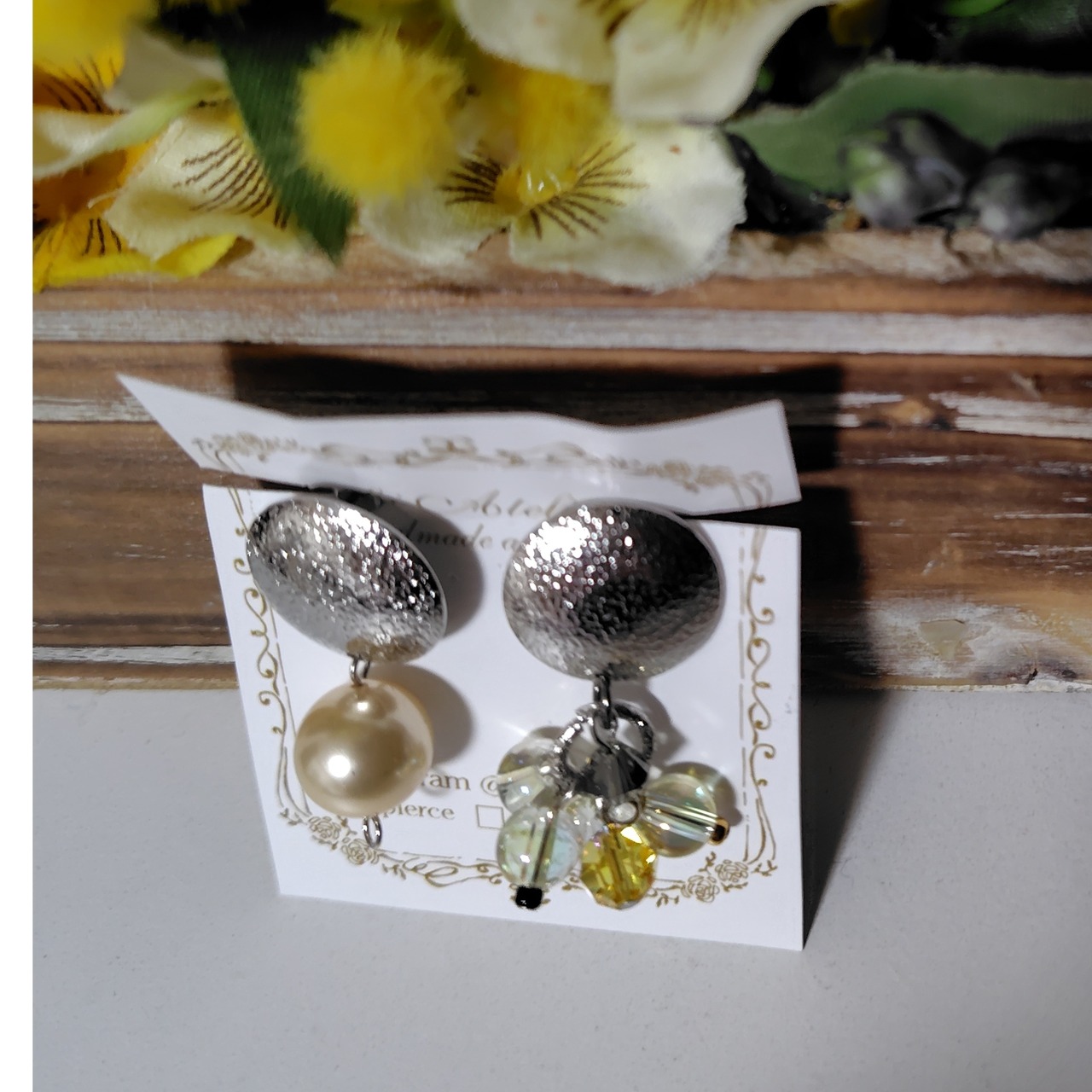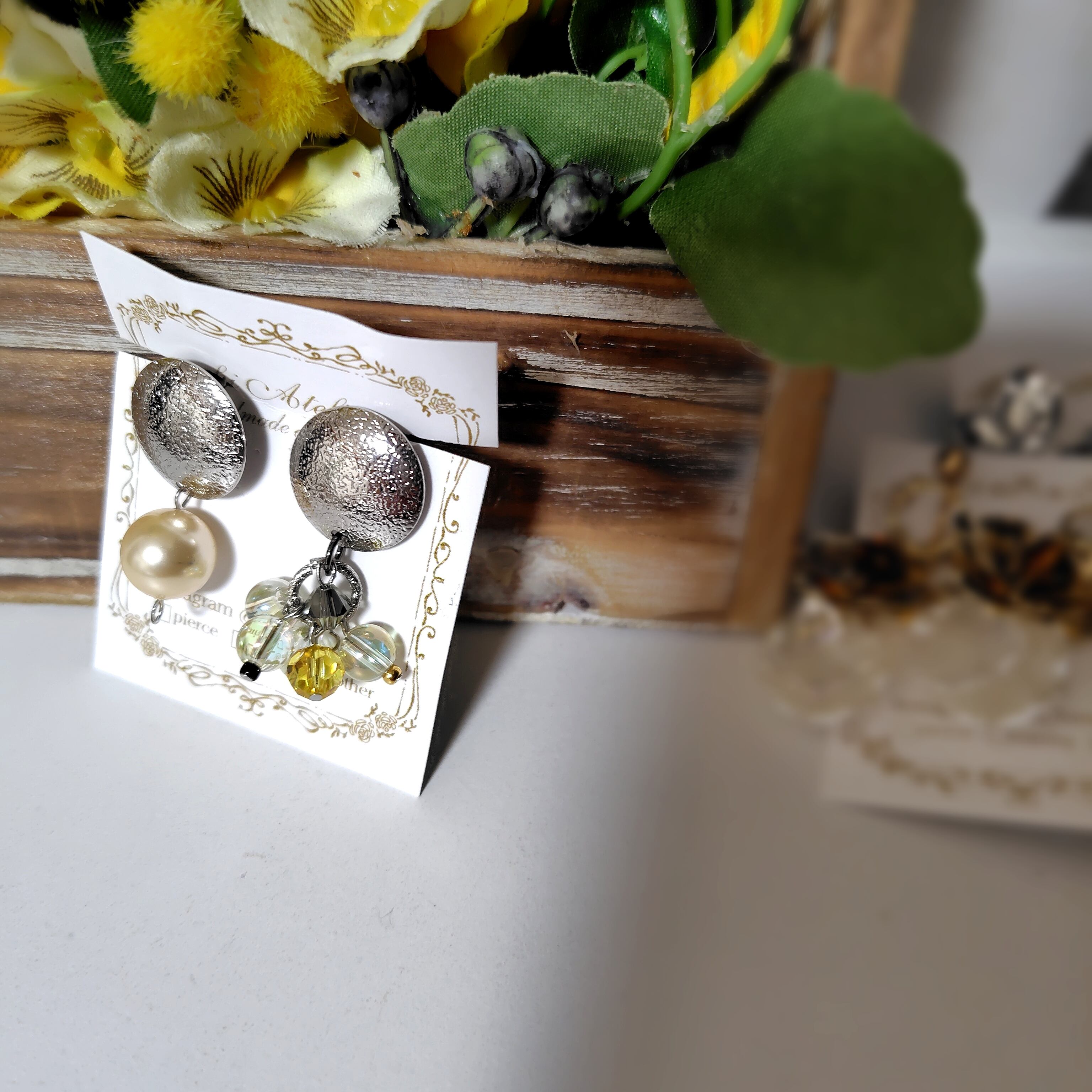 天然石クリスタル✡レモンイエローのようなシトラスカラーの輝きが魅力的なキラキラピアスです。このアイテムは、カジュアルなスタイルからエレガントな装いまで、幅広く対応できるデザインが特徴です☆