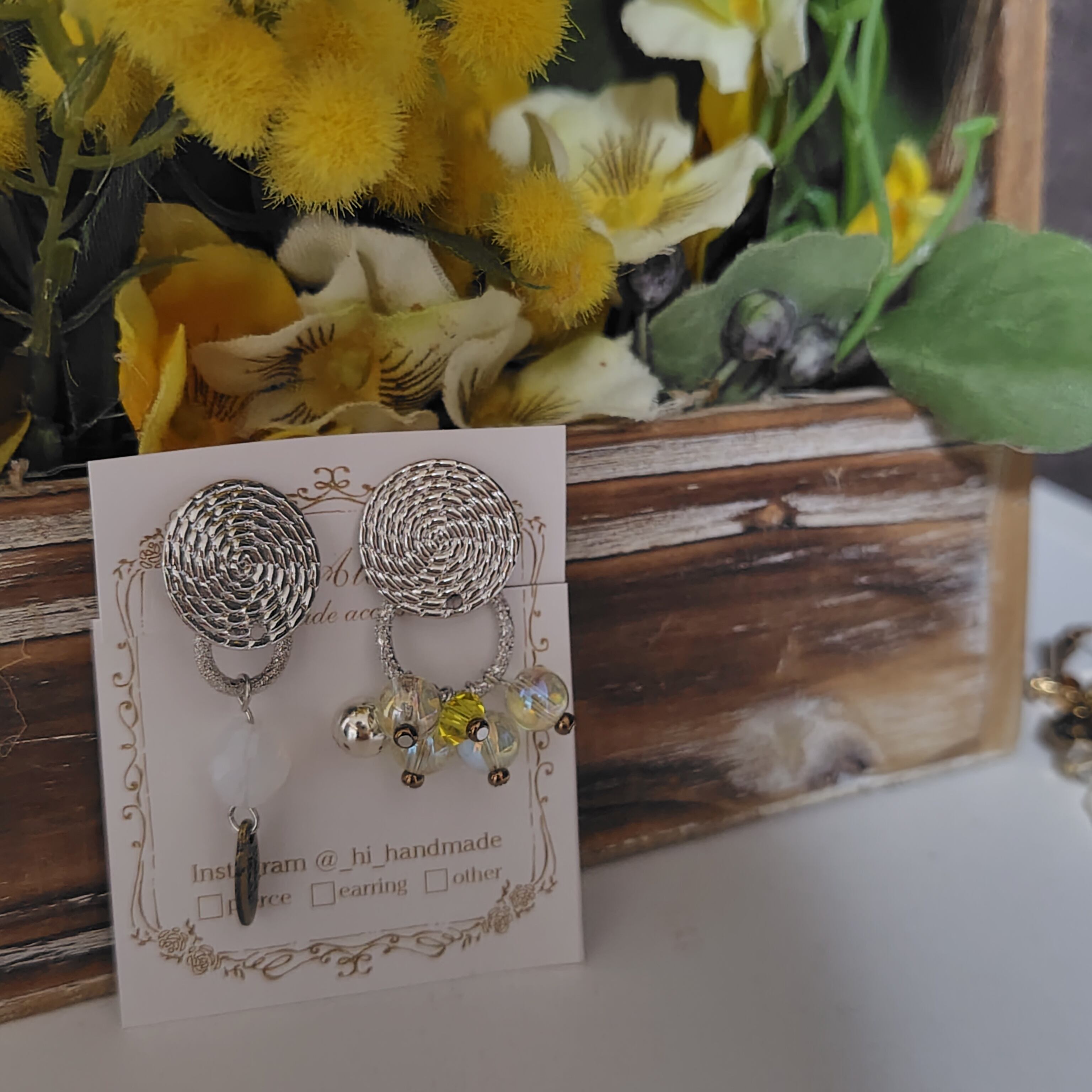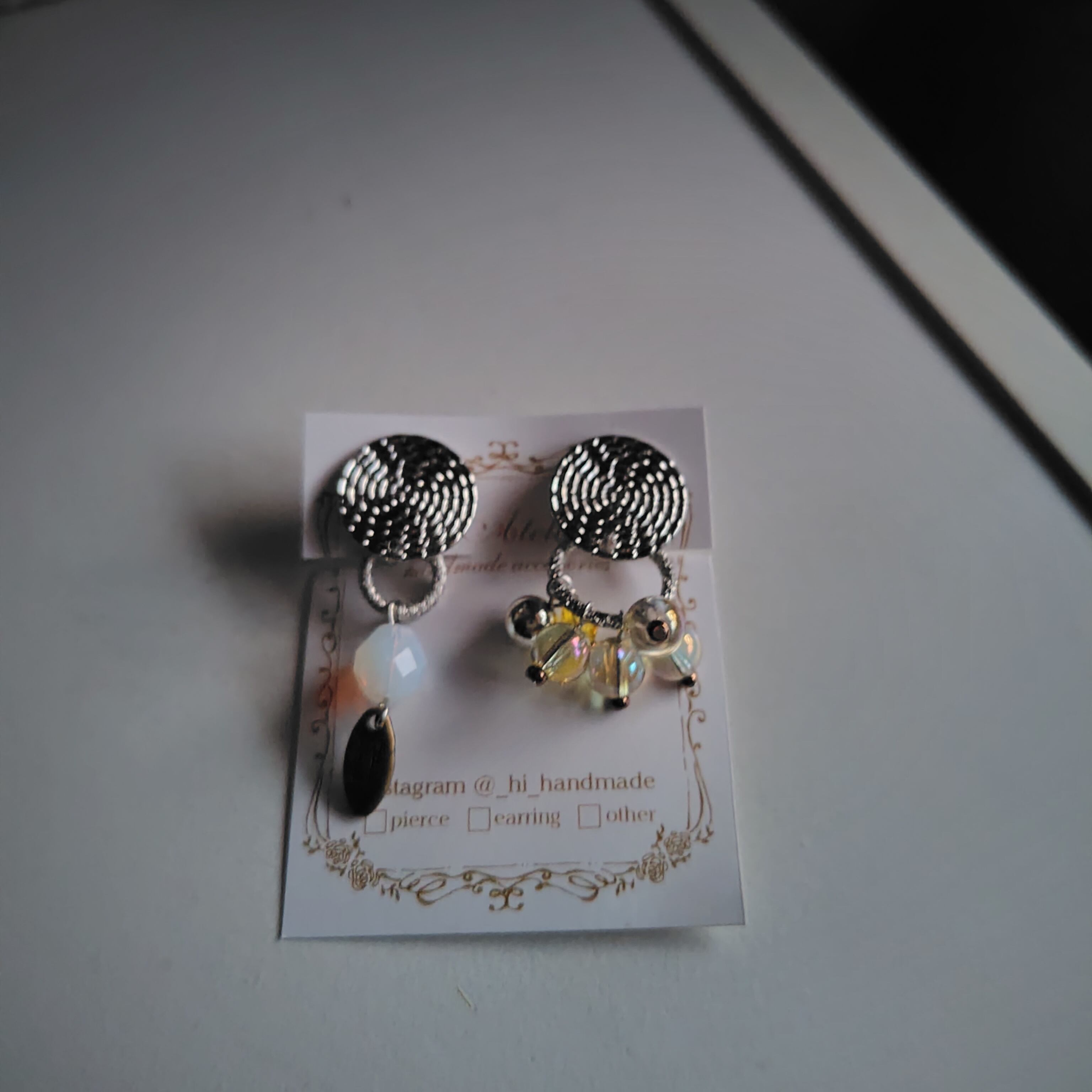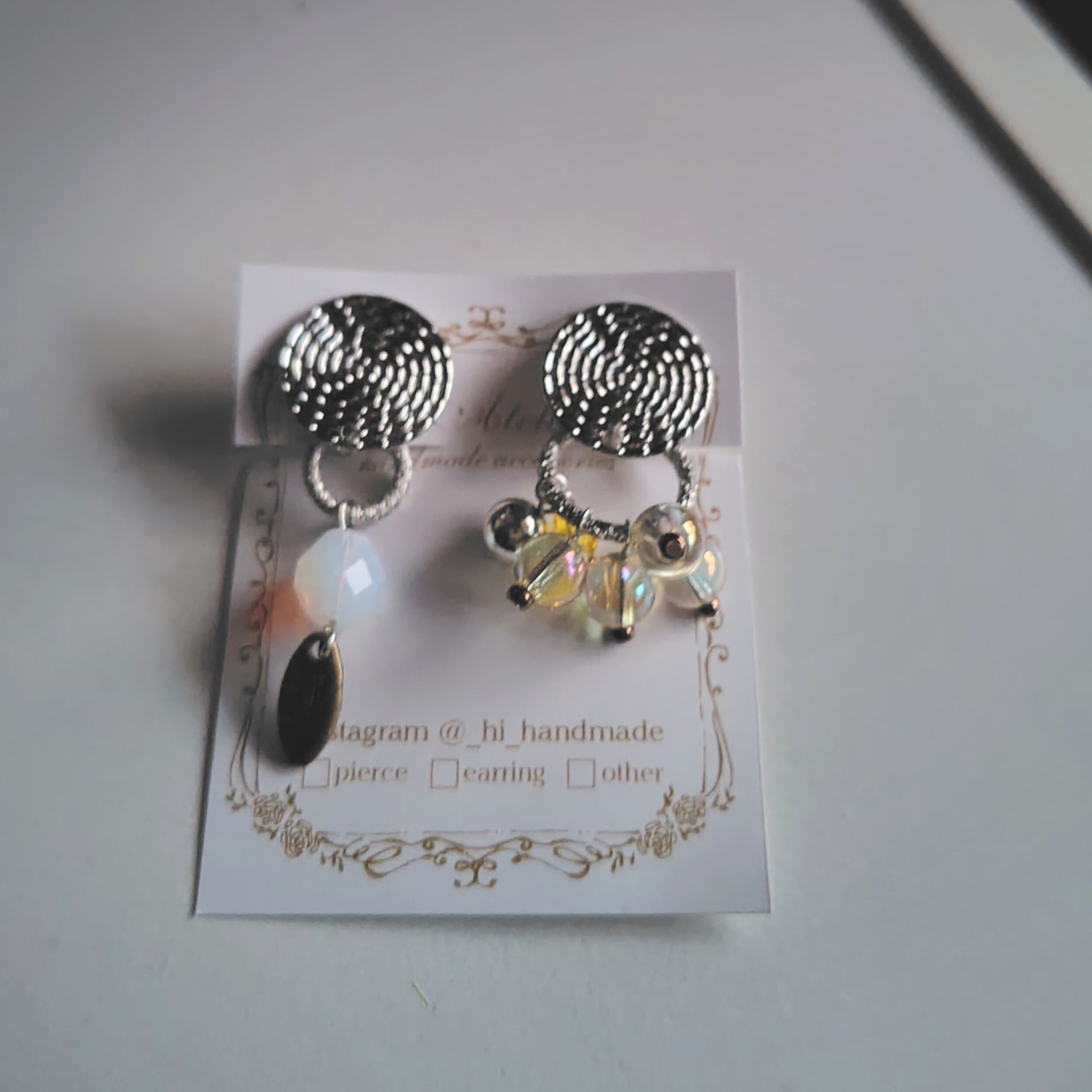 クリスタルは天然石で1点物アシンメトリーとなっております