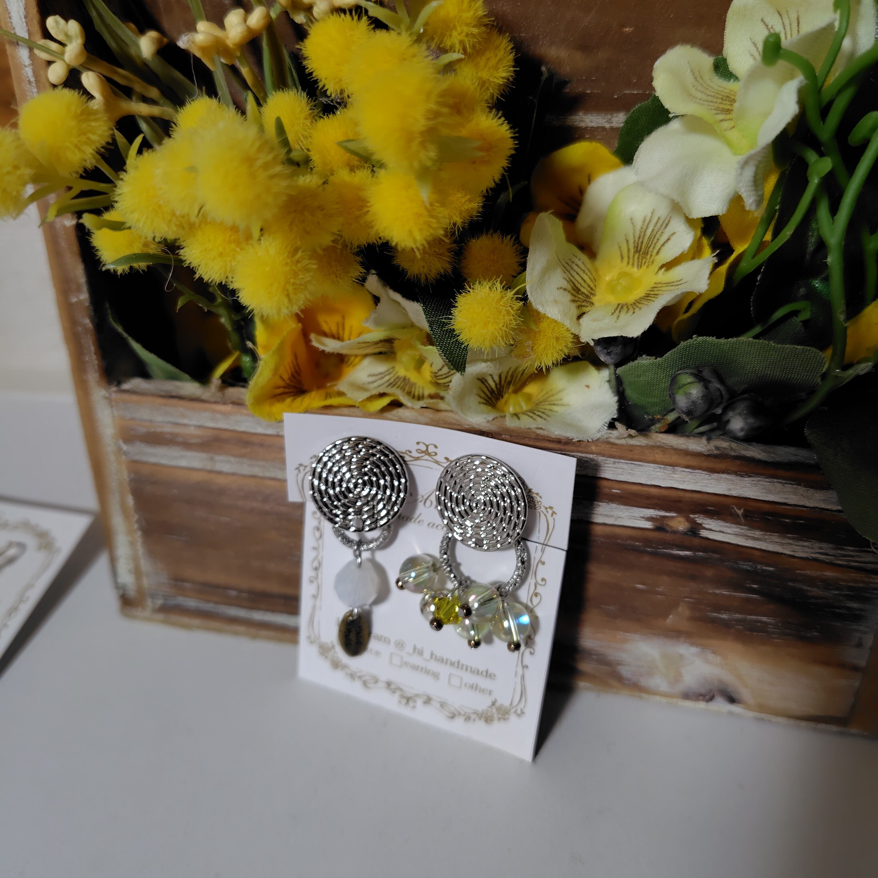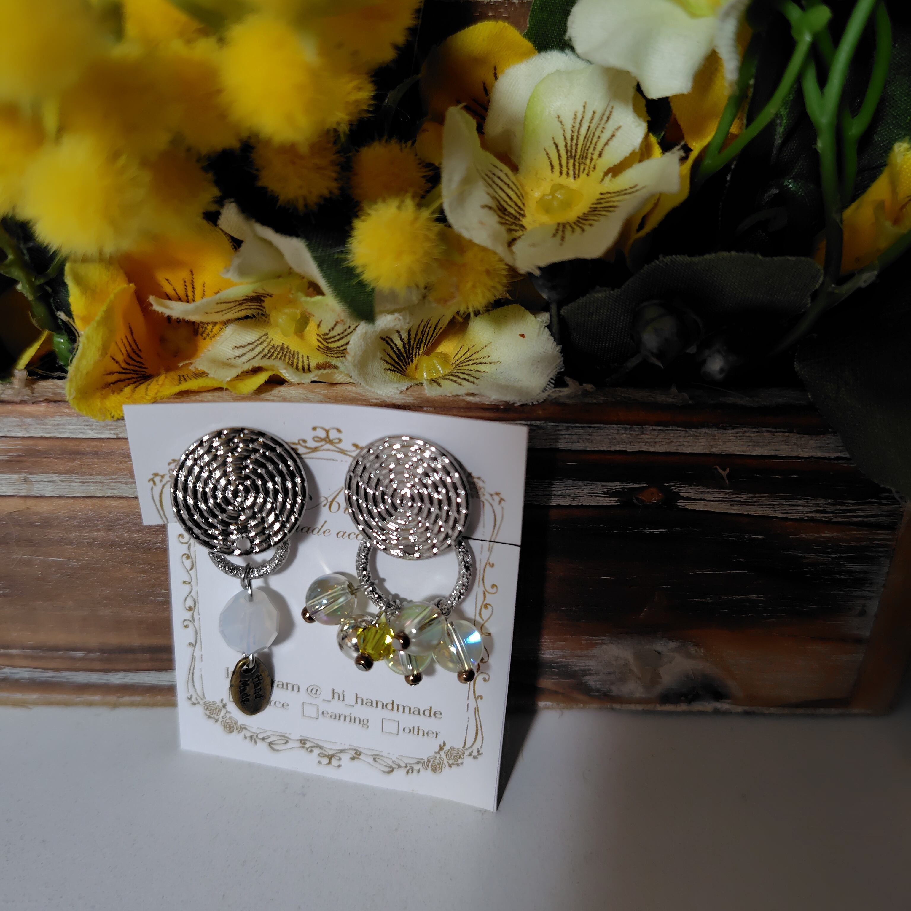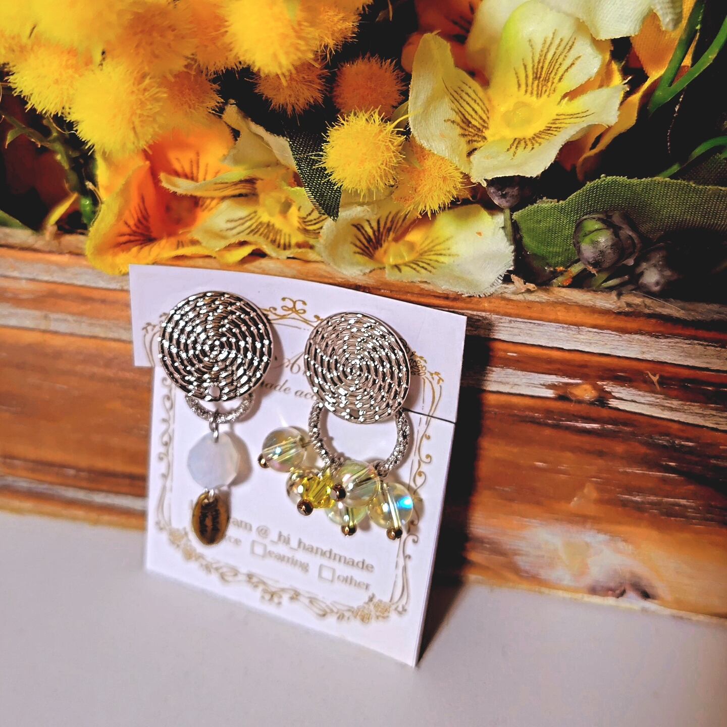 シトラスレモンカラーのミモザをイメージしたイヤリングです